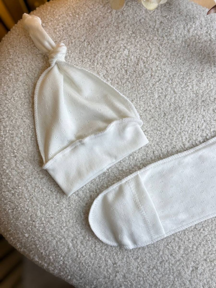 Зручний та практичний варіант для перших днів життя малюка. Виконаний із натуральної бавовни з ніжною перфорацією, яка забезпечує хорошу вентиляцію та комфорт для чутливої шкіри.
