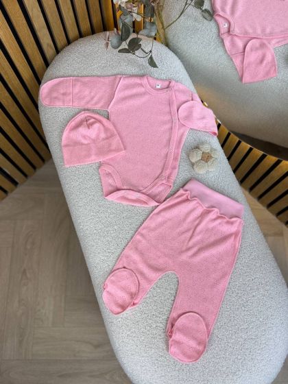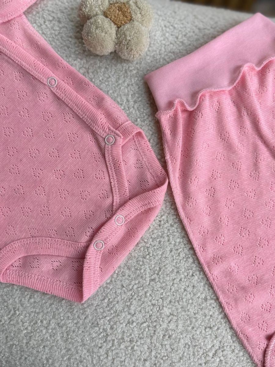 Ідеальний вибір для перших днів життя малюка — поєднання комфорту, практичності та ніжності. Комплект виконаний із натуральної бавовни з делікатною перфорацією, яка дозволяє шкірі дихати та підтримує оптимальний мікроклімат.