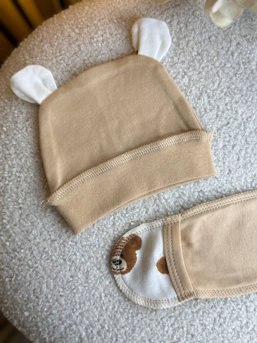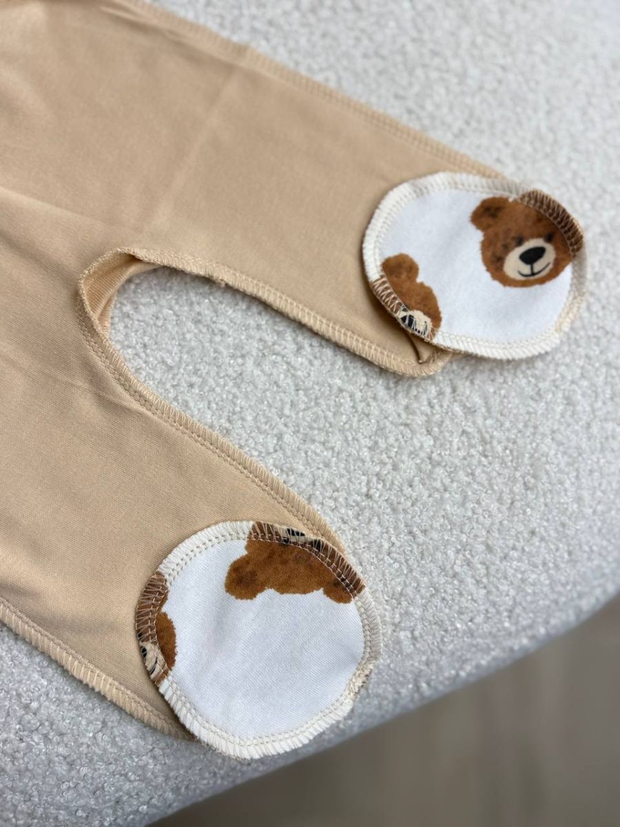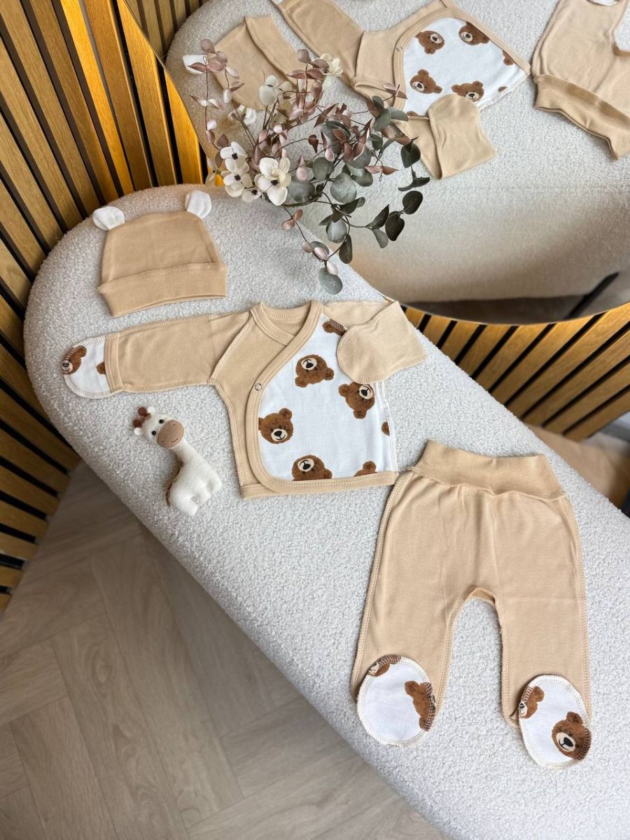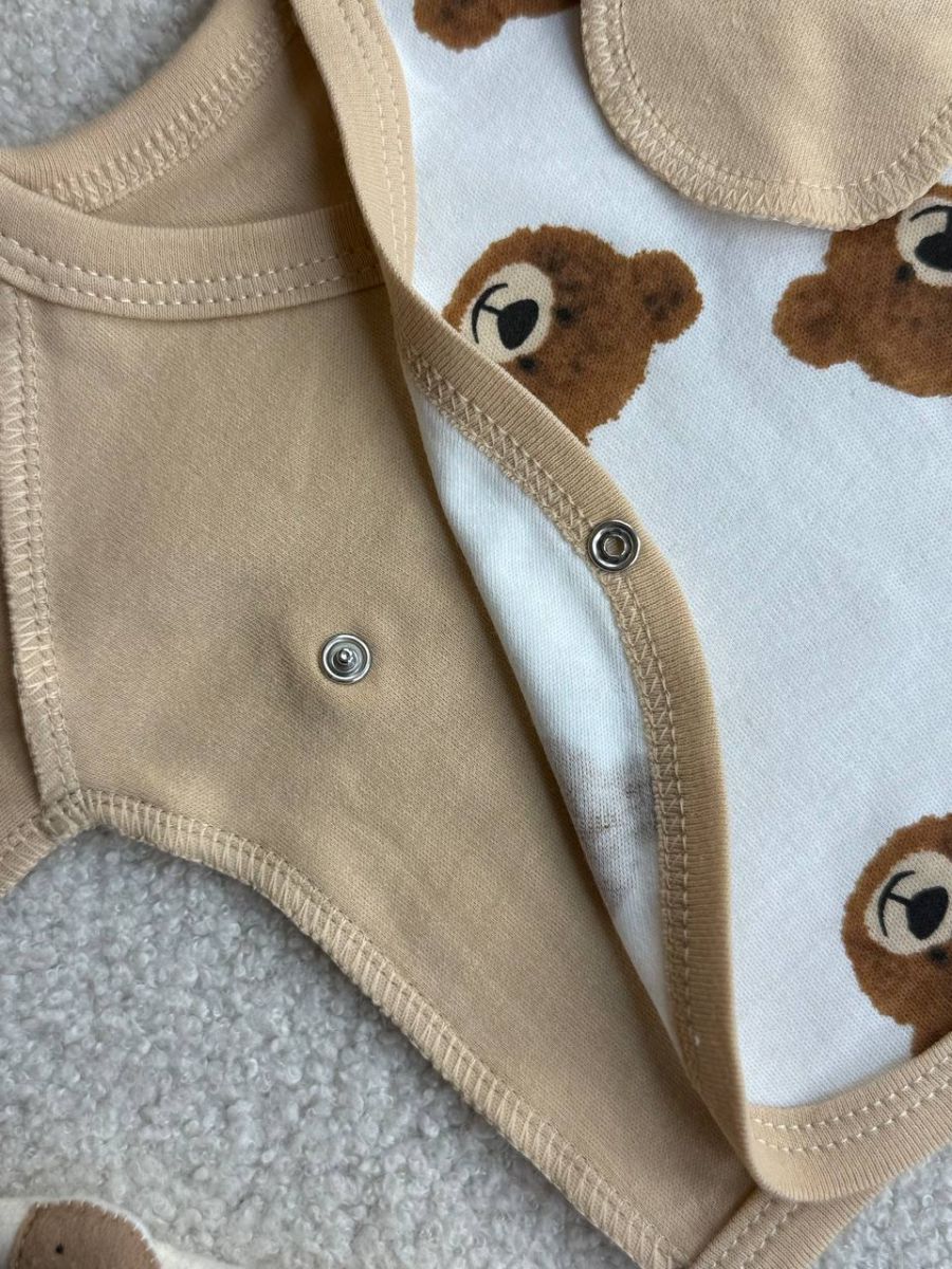 Комплект 3ка з сорочкою інтерлок, БО. Принт - Мордочки ведмедиків на бежевому. Розмір - 56