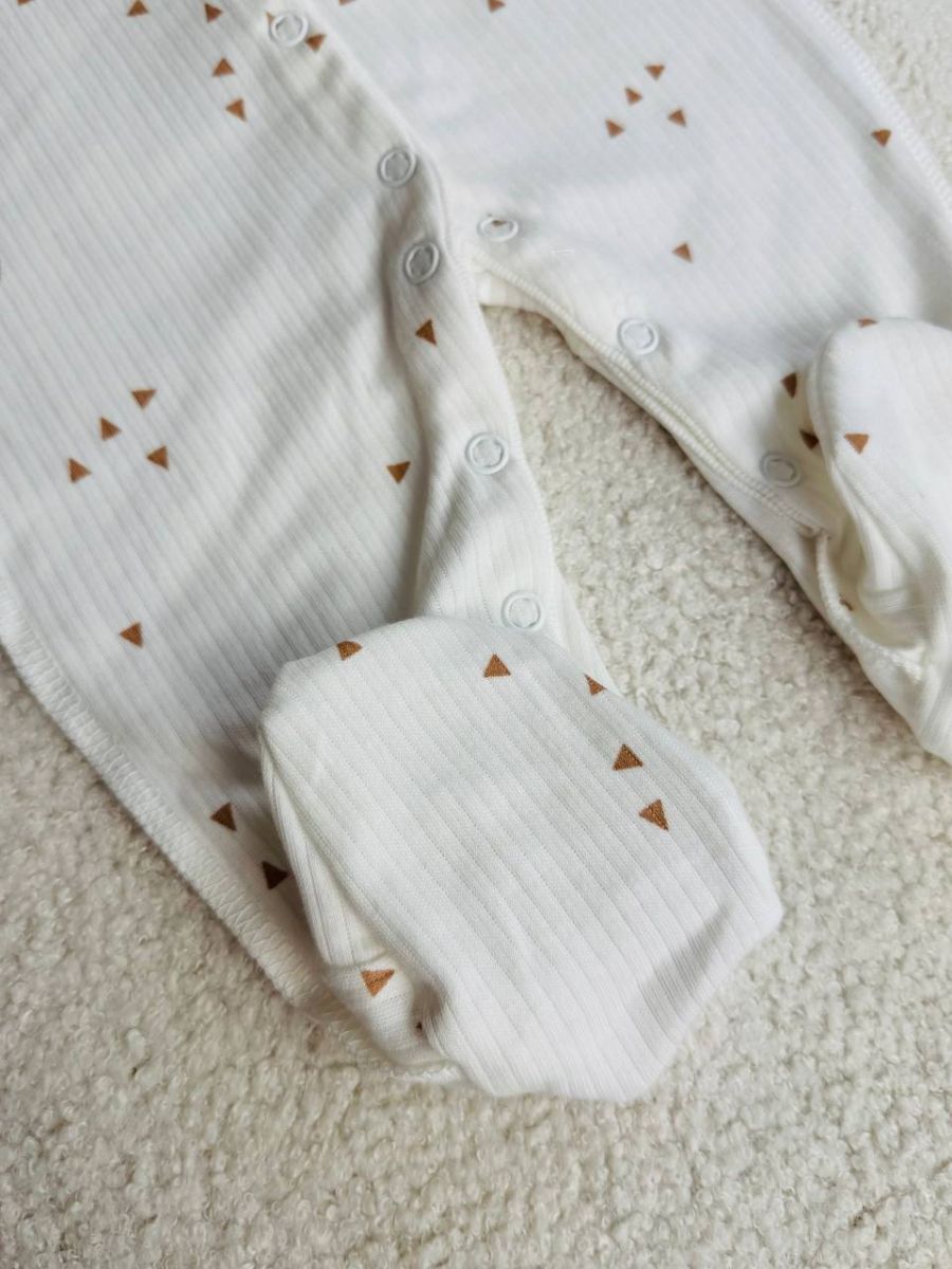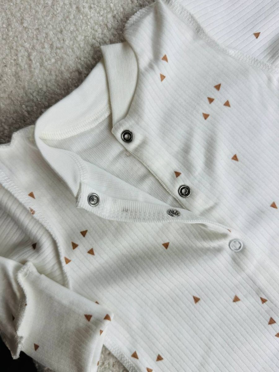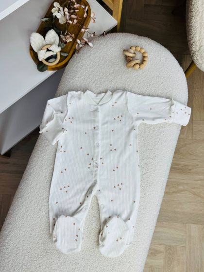 Цей ніжний та затишний комбінезон виконаний у сірому кольорі з милим принтом у вигляді зірочок, що надає йому чарівного вигляду. Він розроблений для забезпечення максимального комфорту та тепла малюку в перші місяці життя.