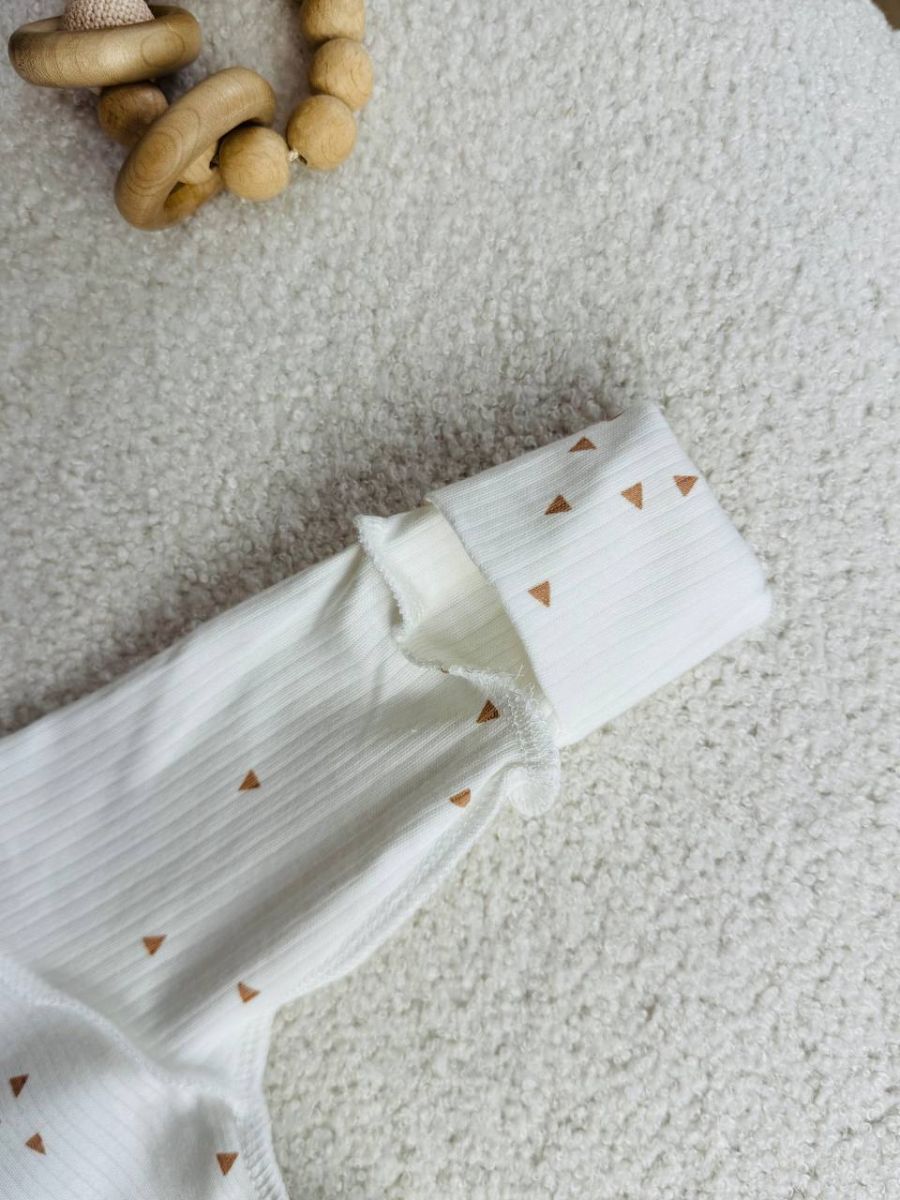 Чоловічок інтерлок в рубчик, Ромашка. Принт - Маленькі трикутнички. Розмір - 62-68см
