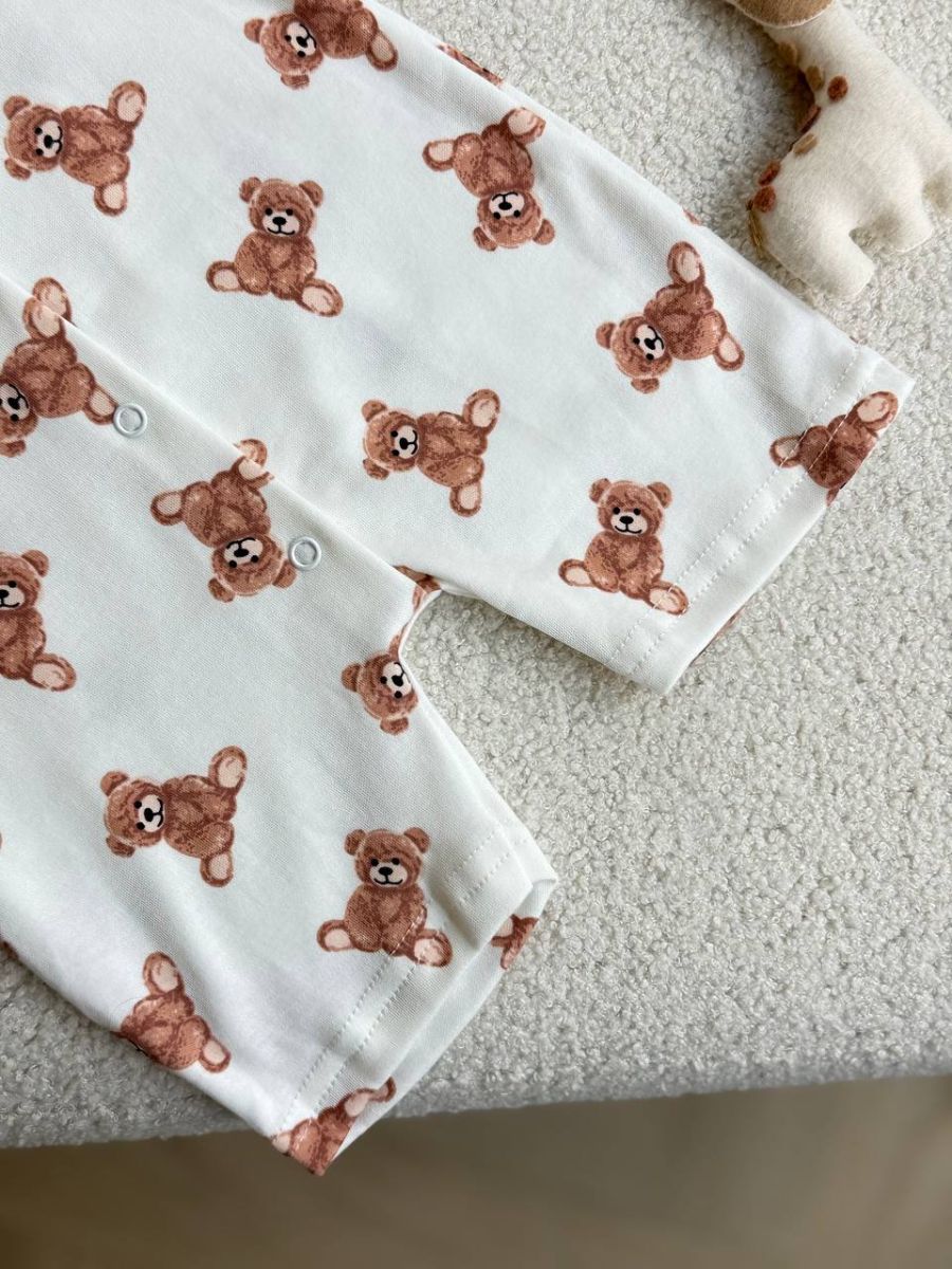 Завдяки кнопкам по всій довжині виріб легко одягати та знімати, що значно спрощує процес перевдягання. Короткі рукави та штанці роблять цей пісочник ідеальним вибором для теплої погоди або домашнього використання.