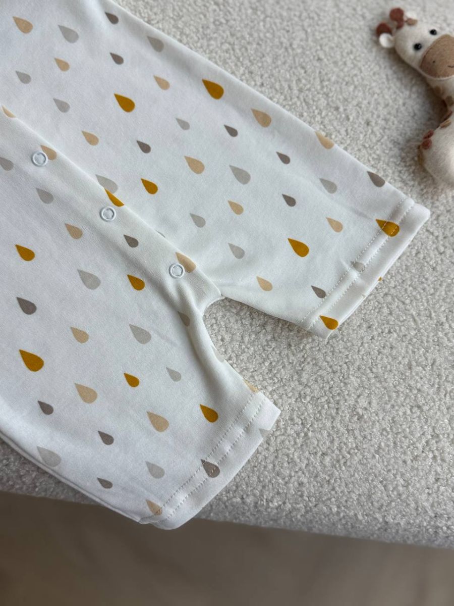Завдяки кнопкам по всій довжині виріб легко одягати та знімати, що значно спрощує процес перевдягання. Короткі рукави та штанці роблять цей пісочник ідеальним вибором для теплої погоди або домашнього використання.