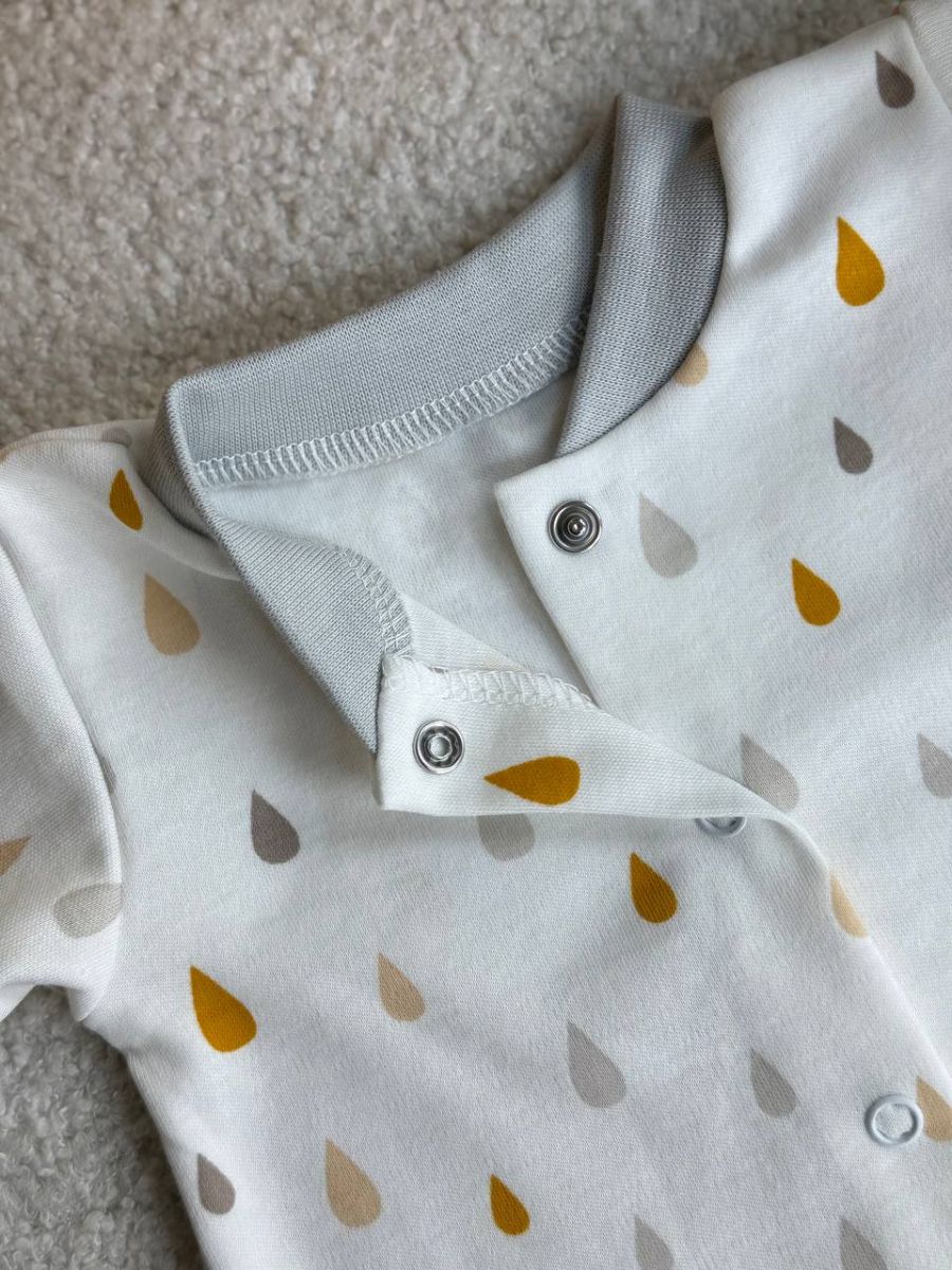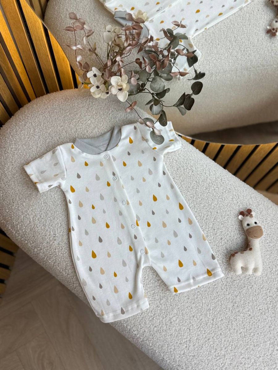 Завдяки кнопкам по всій довжині виріб легко одягати та знімати, що значно спрощує процес перевдягання. Короткі рукави та штанці роблять цей пісочник ідеальним вибором для теплої погоди або домашнього використання.