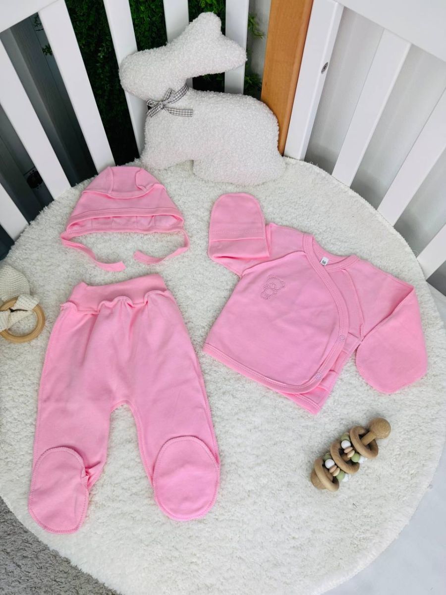 Комплект 3ка з сорочкою інтерлок 56см. Принт - Рожевий однотон