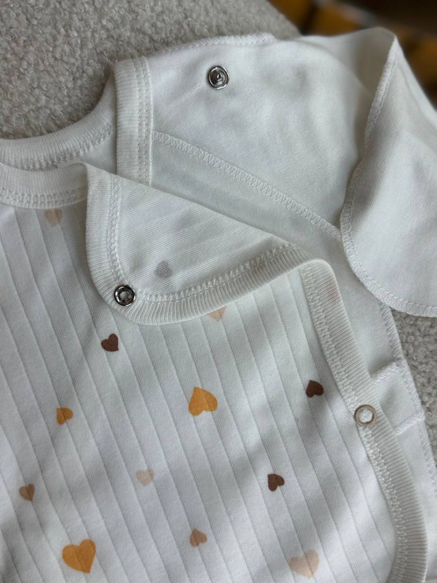 Комплект 3ка з сороч. 56-62, рубчик, Ромашка. Принт - Серця різні беж. Розмір - 56