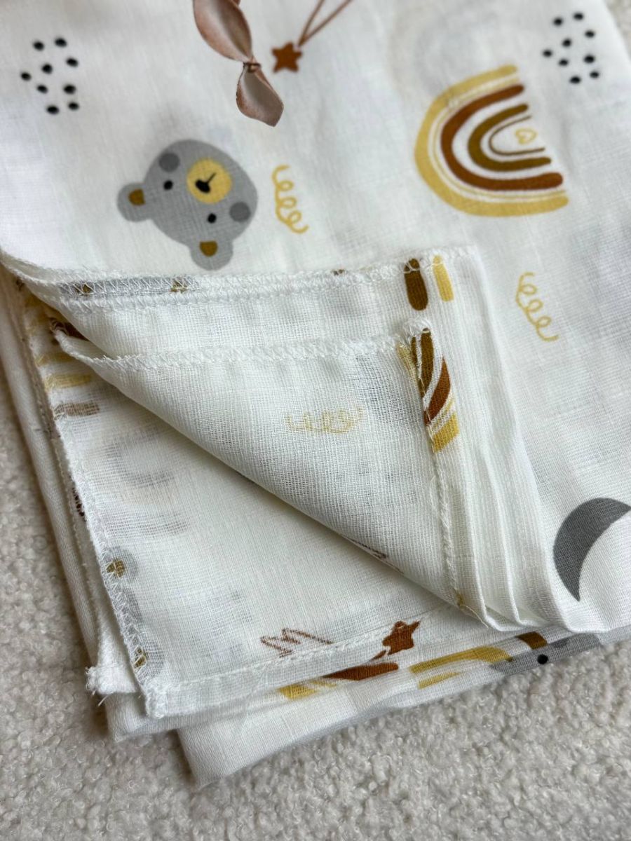 Двошарова муслінова пелюшка — це універсальна та незамінна річ у догляді за немовлям. Виготовлена з натуральної бавовни, вона дуже м’яка, приємна до ніжної шкіри малюка та не викликає подразнень. Завдяки особливому плетінню муслін добре пропускає повітря, що допомагає підтримувати комфортну температуру та запобігає перегріванню.