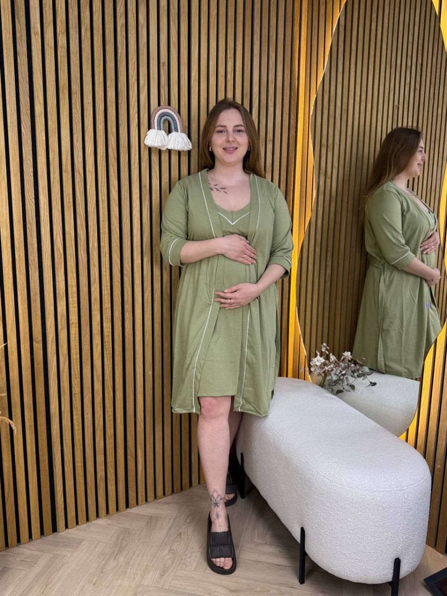 Комплект для вагітних та годуючих мам: сорочка + халат