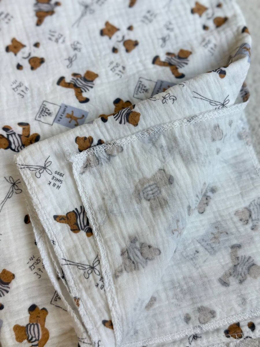 ❤ Пелюшки муслінові чотирьохшарові, жатка. Принт - Ведмедик в піжамці. Розмір - 90*135см (#86255075) ✓ Anna Konvert