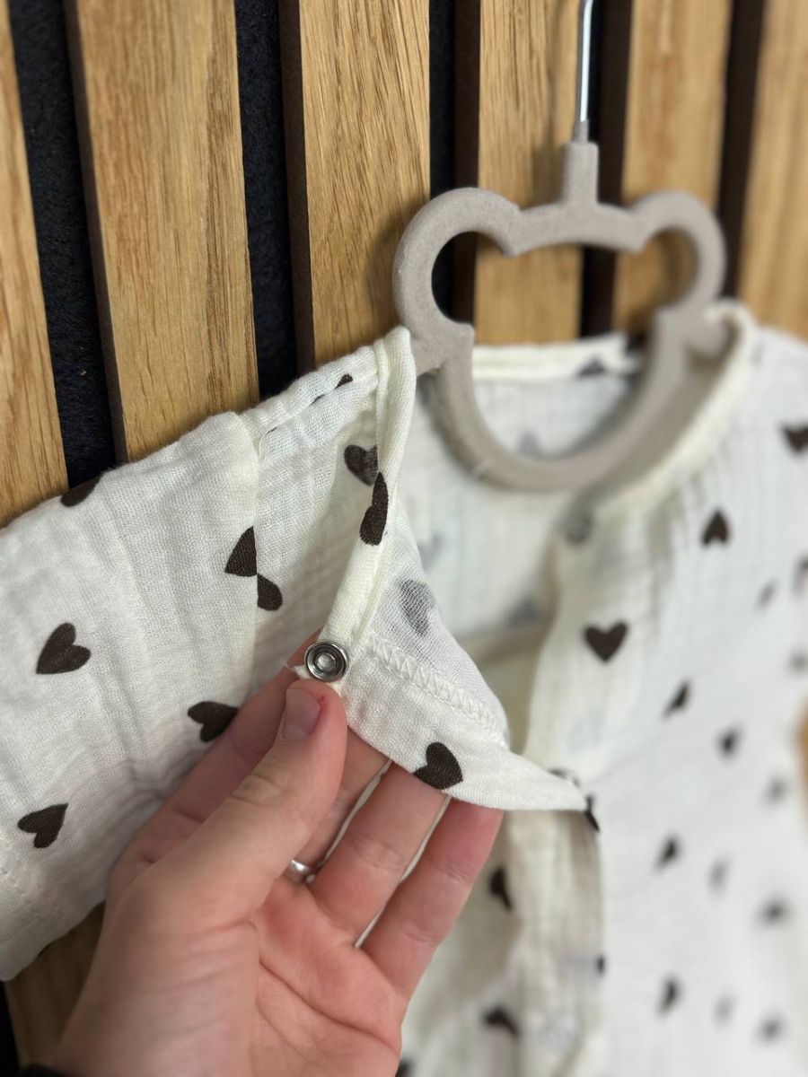 Подаруйте малюкові максимальний комфорт із нашим боді з натурального мусліну. Цей дихаючий, надзвичайно м’який матеріал ніжно огортає шкіру дитини, дірує комфорт спекотнім літом. Ідеально підходить для чутливої шкіри новонароджених, не викликає подразнень і дозволяє шкірі "дихати.
