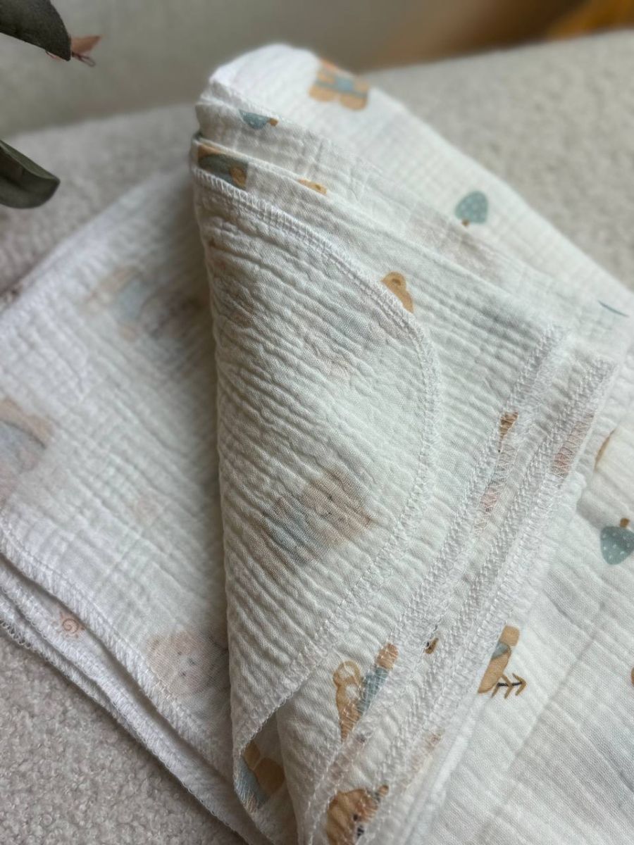 Відчуйте справжню ніжність і комфорт з преміальною мусліновою пелюшкою, яка поєднує легкість, універсальність і турботу про вашого малюка.