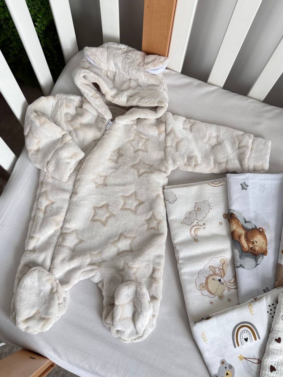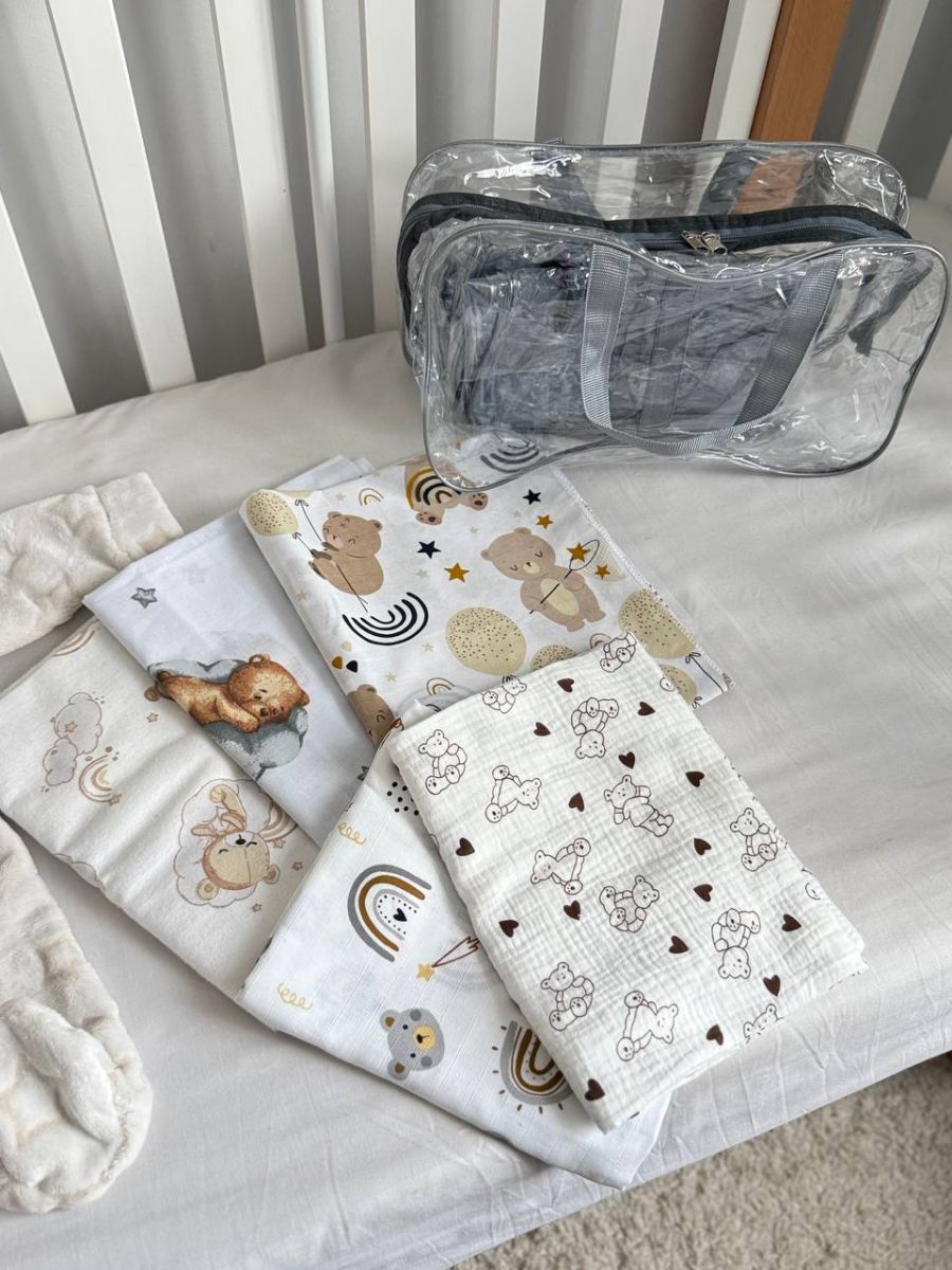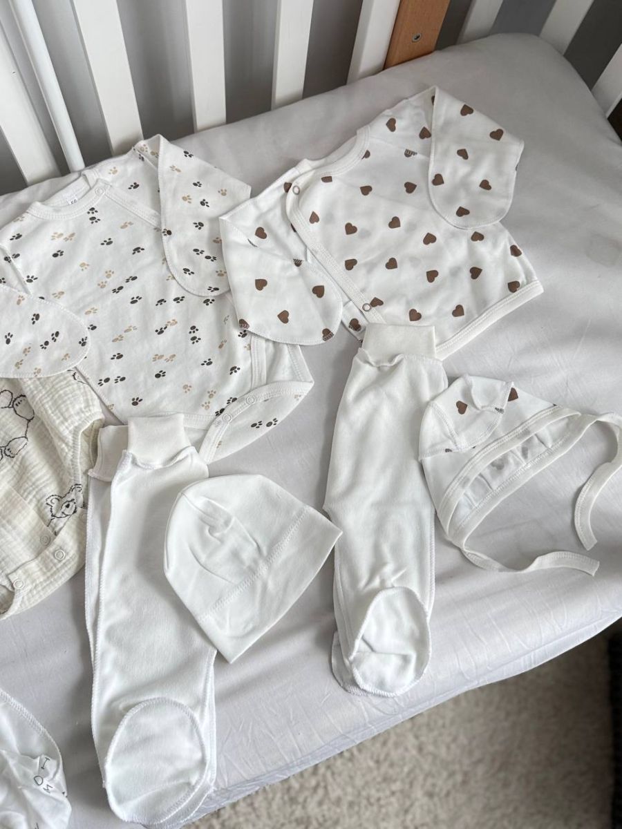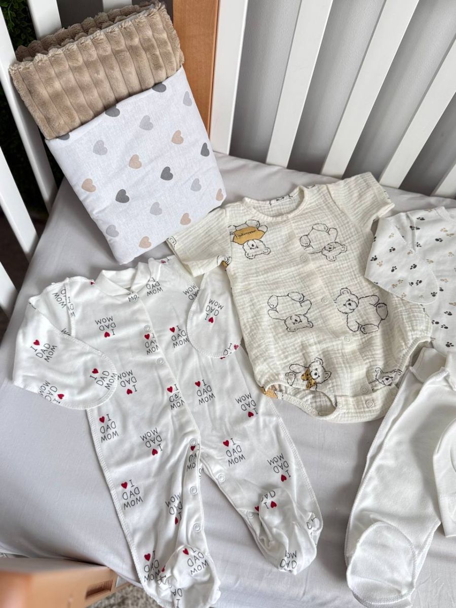 У ньому зібрано все, що потрібно в пологовому будинку: зручний одяг для новонародженого, ніжні текстильні вироби та практичні аксесуари. Кожна позиція підібрана з урахуванням комфорту малюка, безпеки матеріалів та зручності для мами.