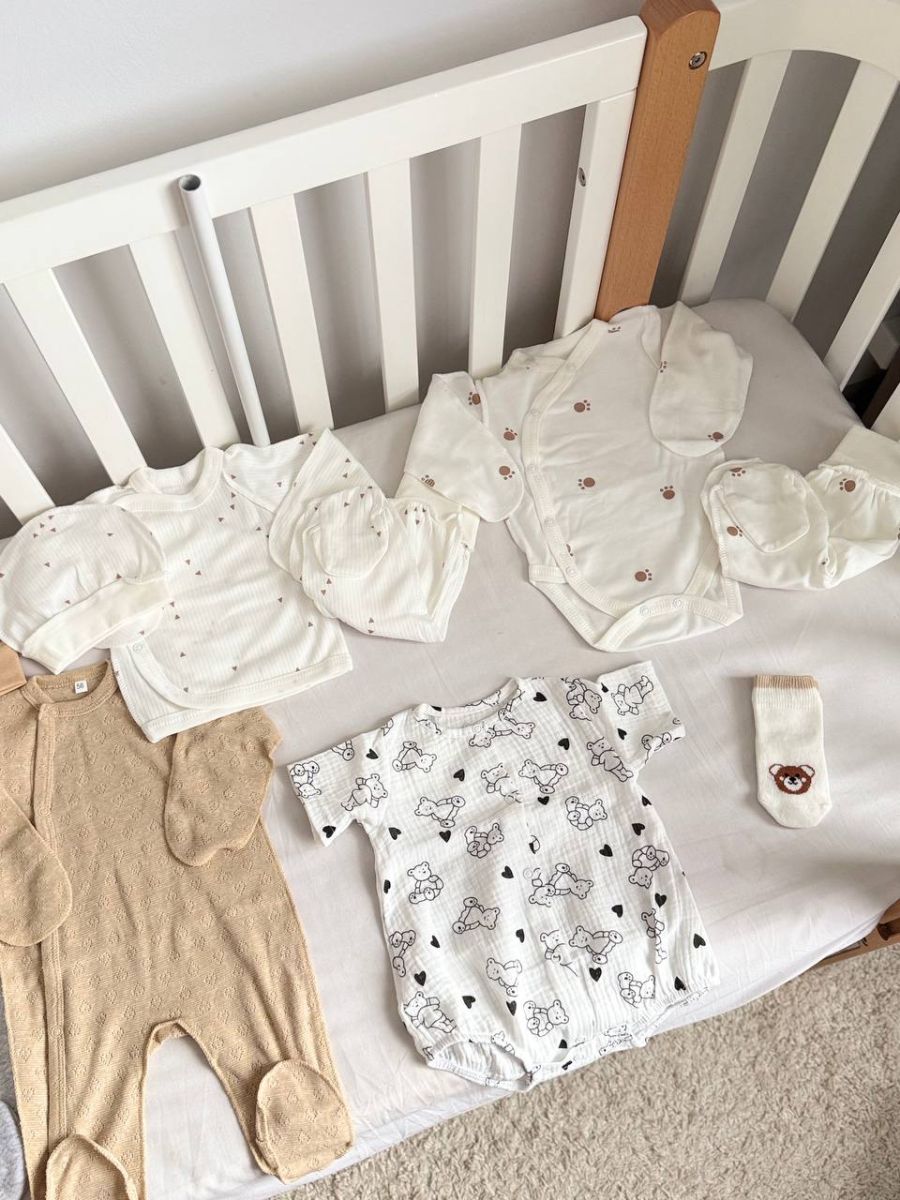 - Прання перед першою носкою: Обов’язково виперіть весь новий одяг перед тим, як вдягнути його на малюка, навіть якщо він виглядає чистим. Це допоможе позбутися від залишкових фарбників, пилу та можливих бактерій.