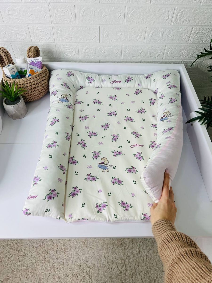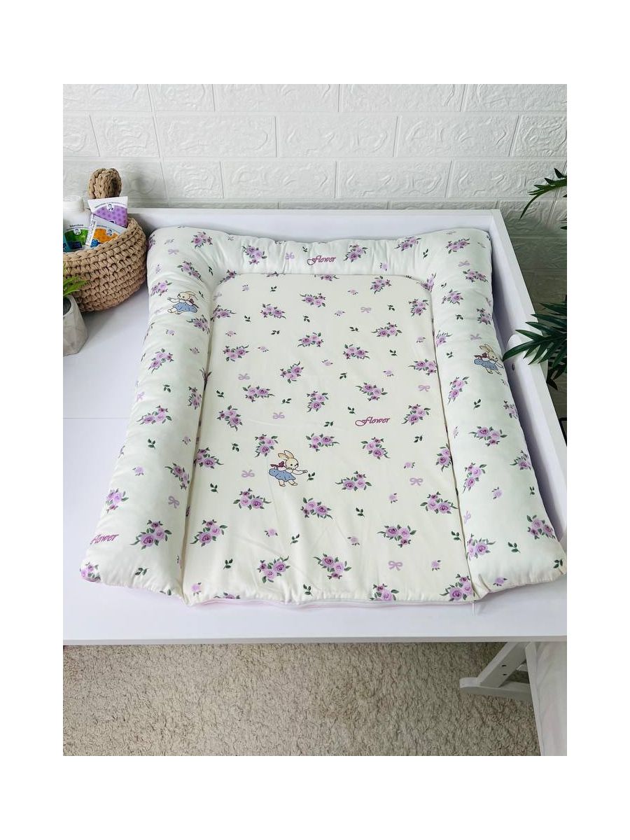 Матрасик у пеленатор, на блискавці, поролон з'ємний, 55см на 70см. Принт - Зайка з квітами