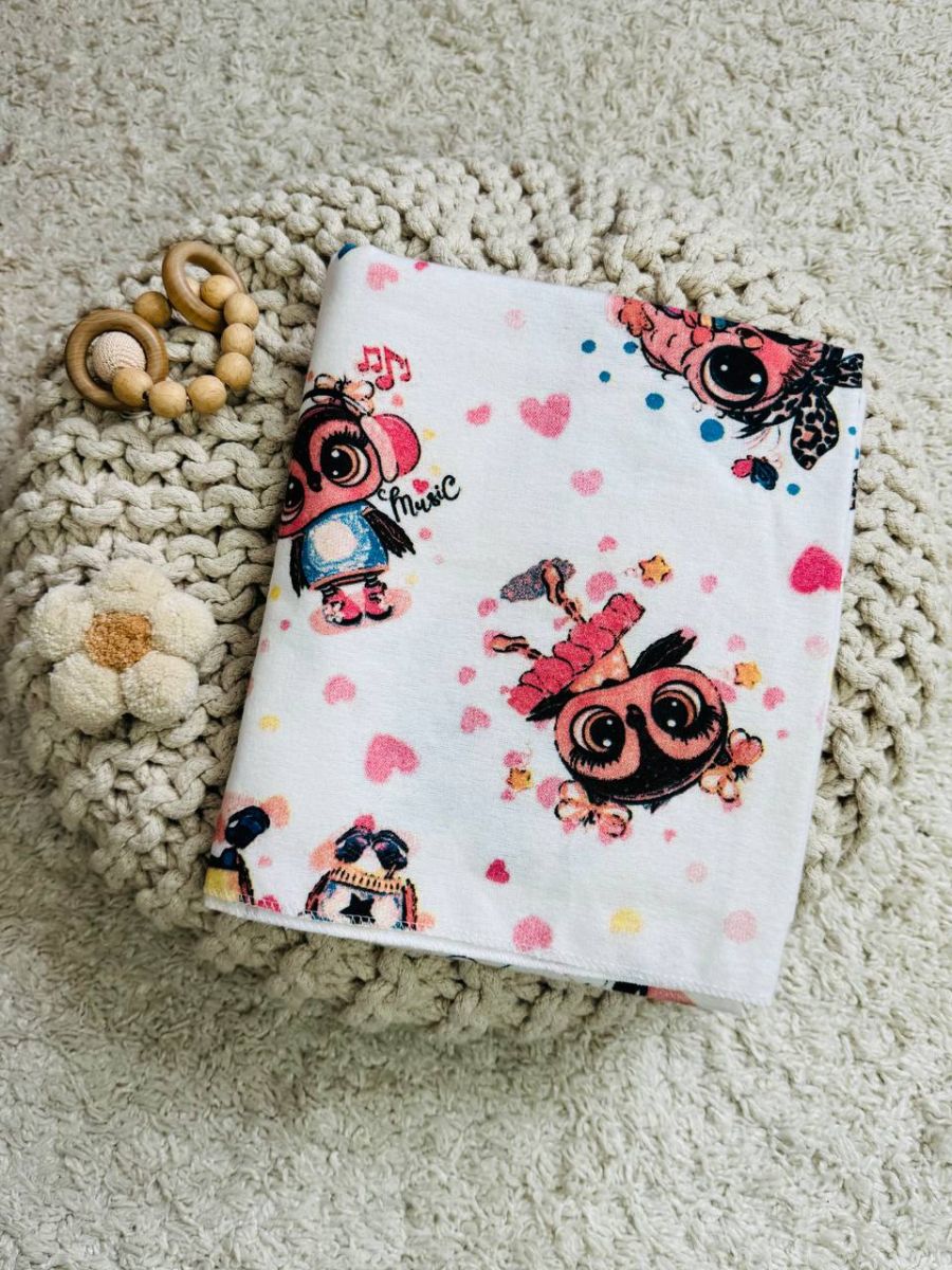 Пелюшки байкові 90*105см. Принт - Совенята в кепці