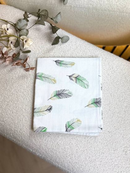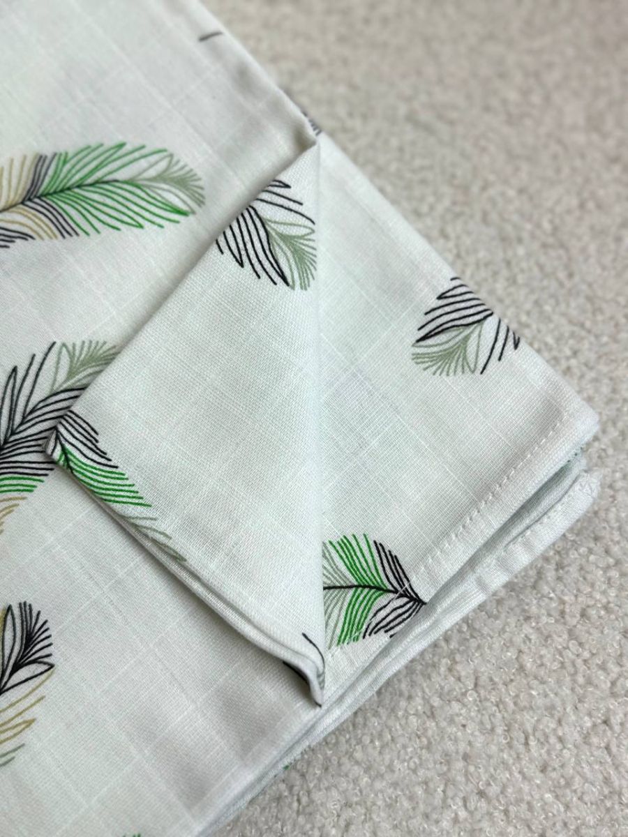 Пелюшки муслінові двошарові. Принт - Пір'я зелені
