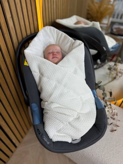 Стильна ковдра із текстурою “косичка” стане незамінним аксесуаром для вашого малюка та чудово підійде для виписки з пологового будинку.