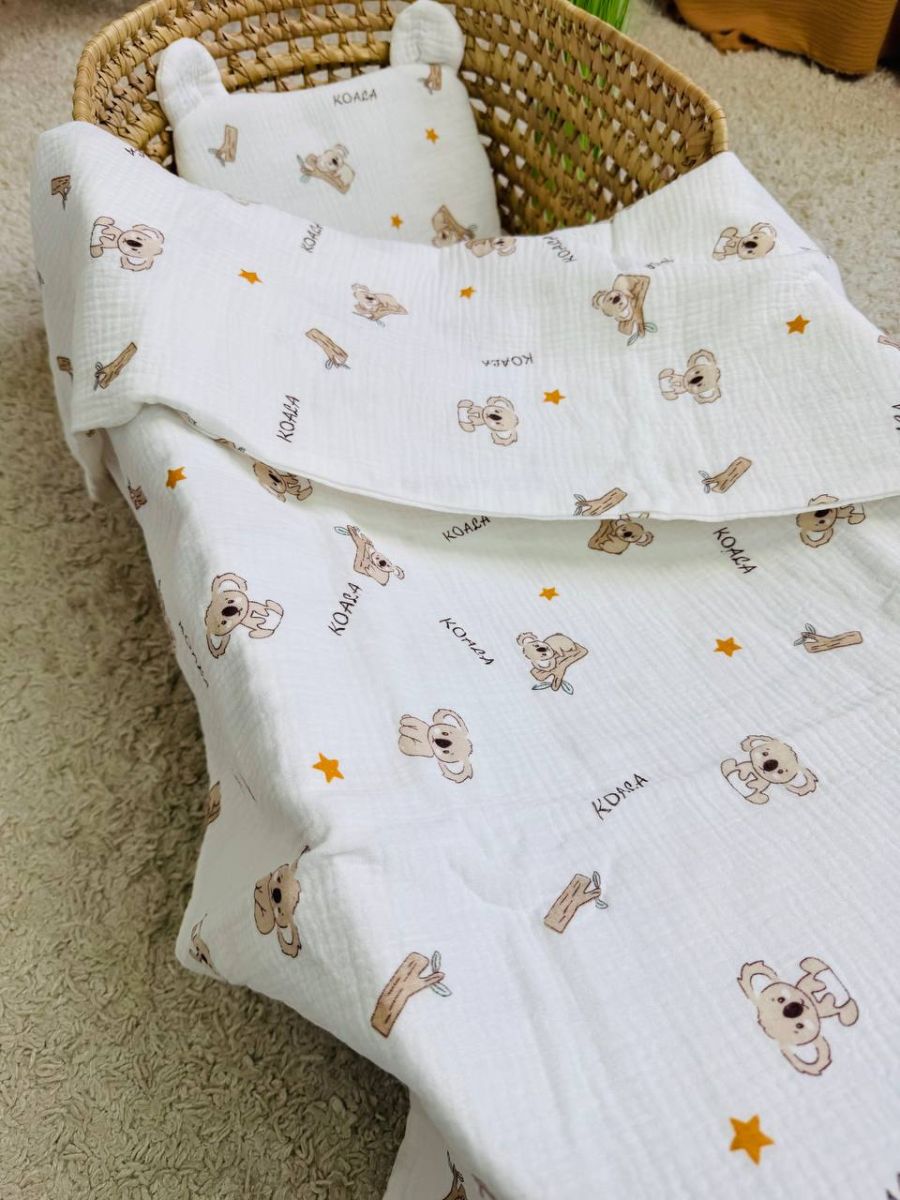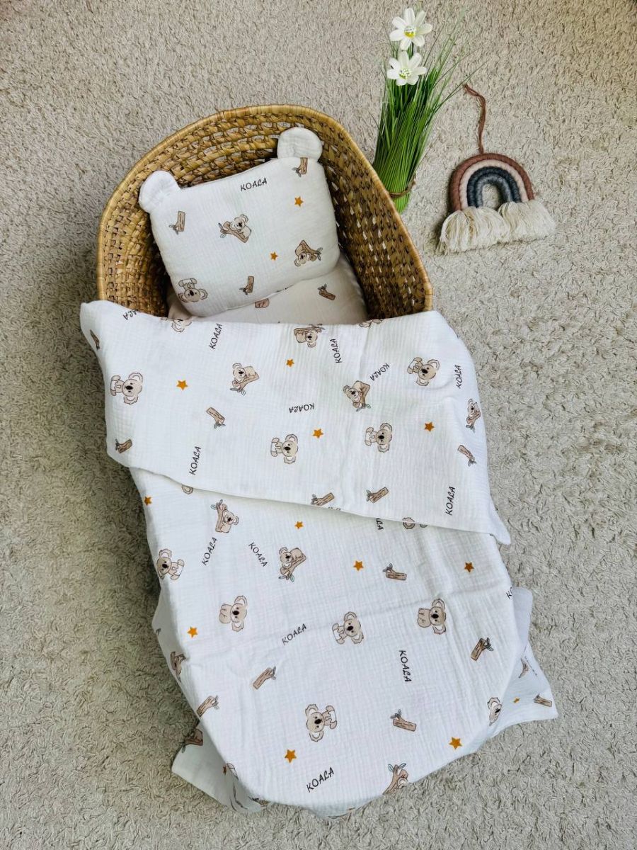 Подаруйте своєму малюкові комфорт із нашими м’якими та практичними мусліновими аксесуарами. Ідеальний вибір для прогулянок, сну та урочистих моментів, таких як виписка.