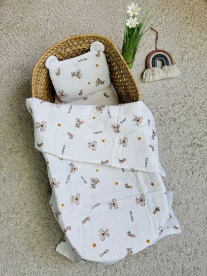 Набір у візочок мусліновий. Колір - Коала з місяцем