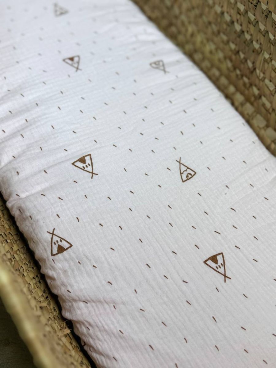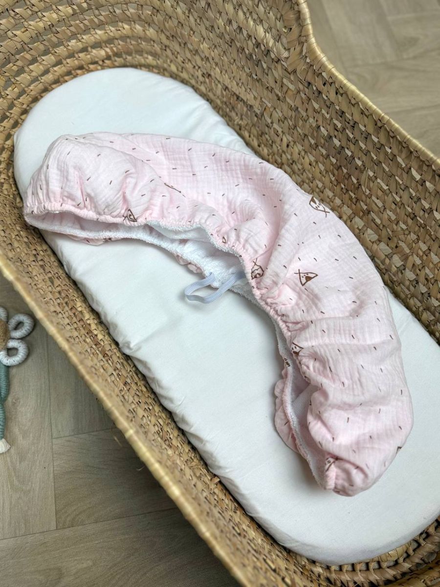 Простирадло муслін непромакаюче у візочок на гумці. Колір - Вігвам на рожевому