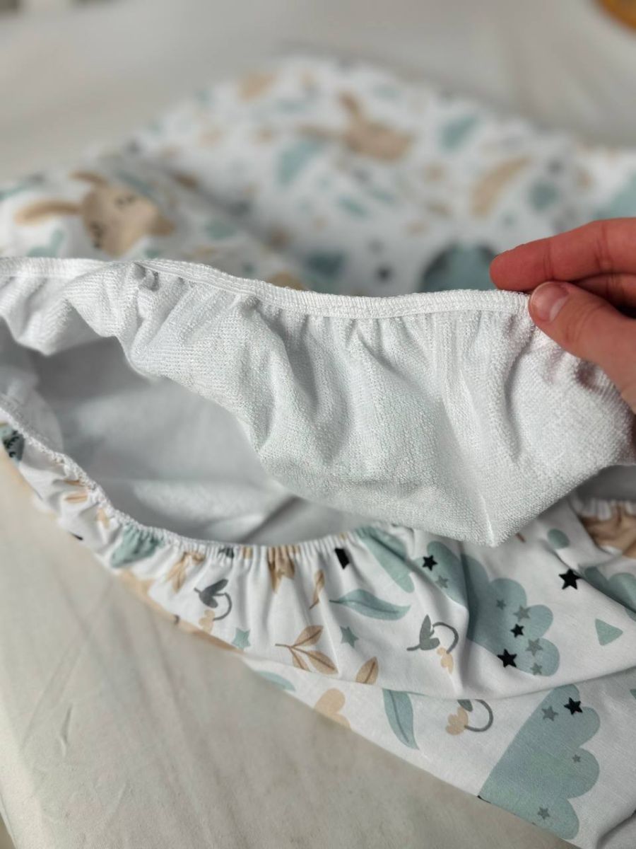 Непромокаюче простирадло 120×60 з м’якої тканини та захисним водонепроникним шаром. Надійно оберігає матрац від вологи й забруднень, добре фіксується та підходить для дитячих ліжечок.