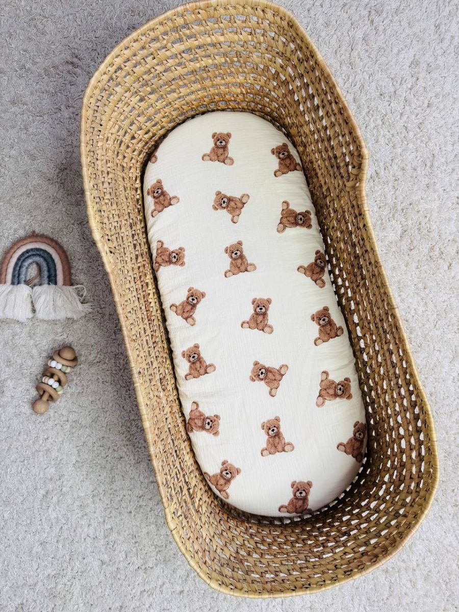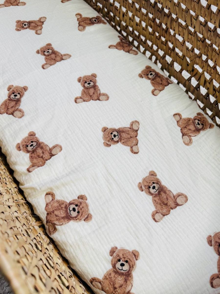 Простирадло муслін непромакаюче у візочок, розмір 75*35 см. Колір - Ведмедик сидячий, молочний