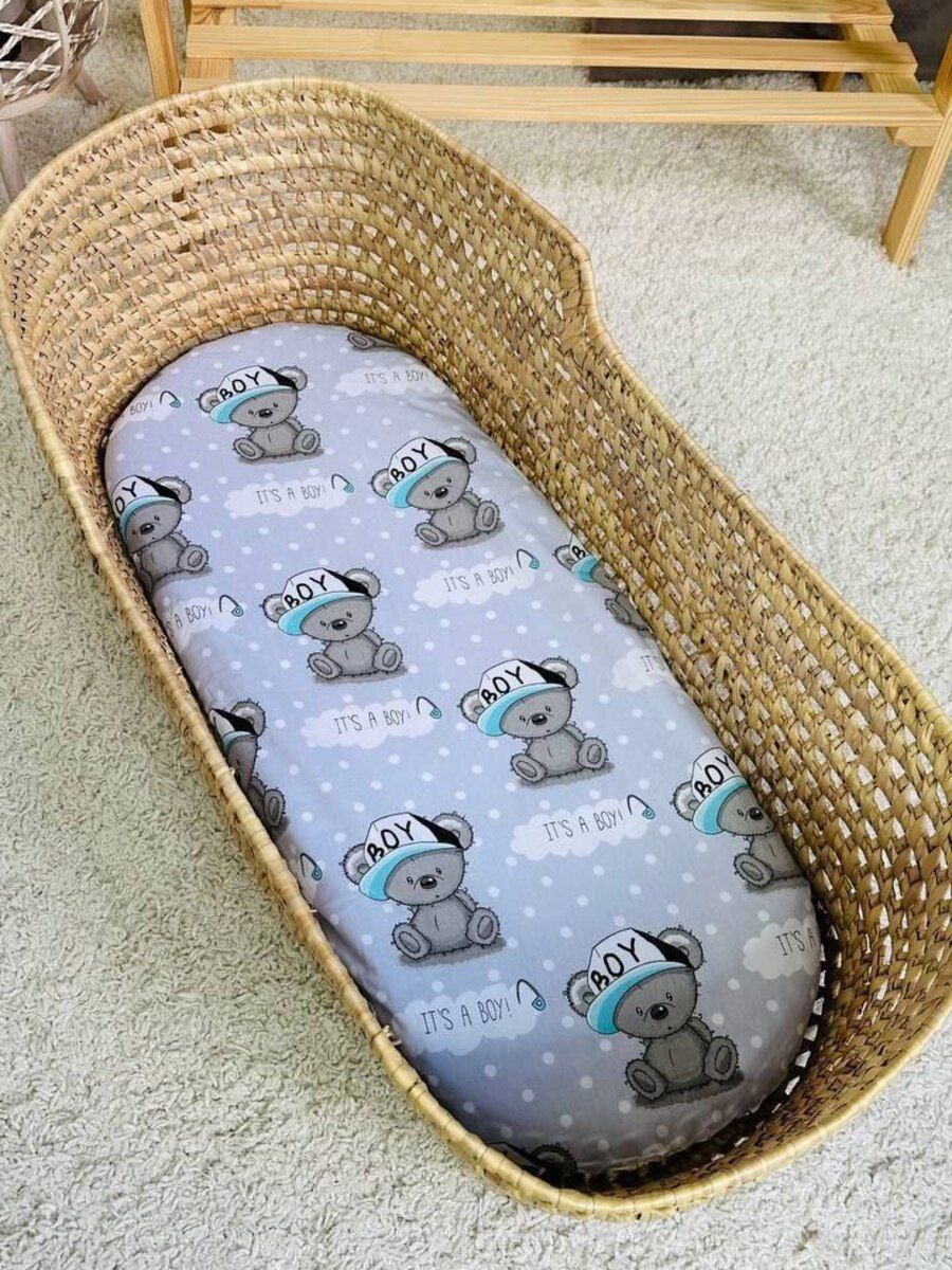 Простирадло непромакаюче у візочок на гумці. Принт - Ведмідь в кепці на сірому It's a boy
