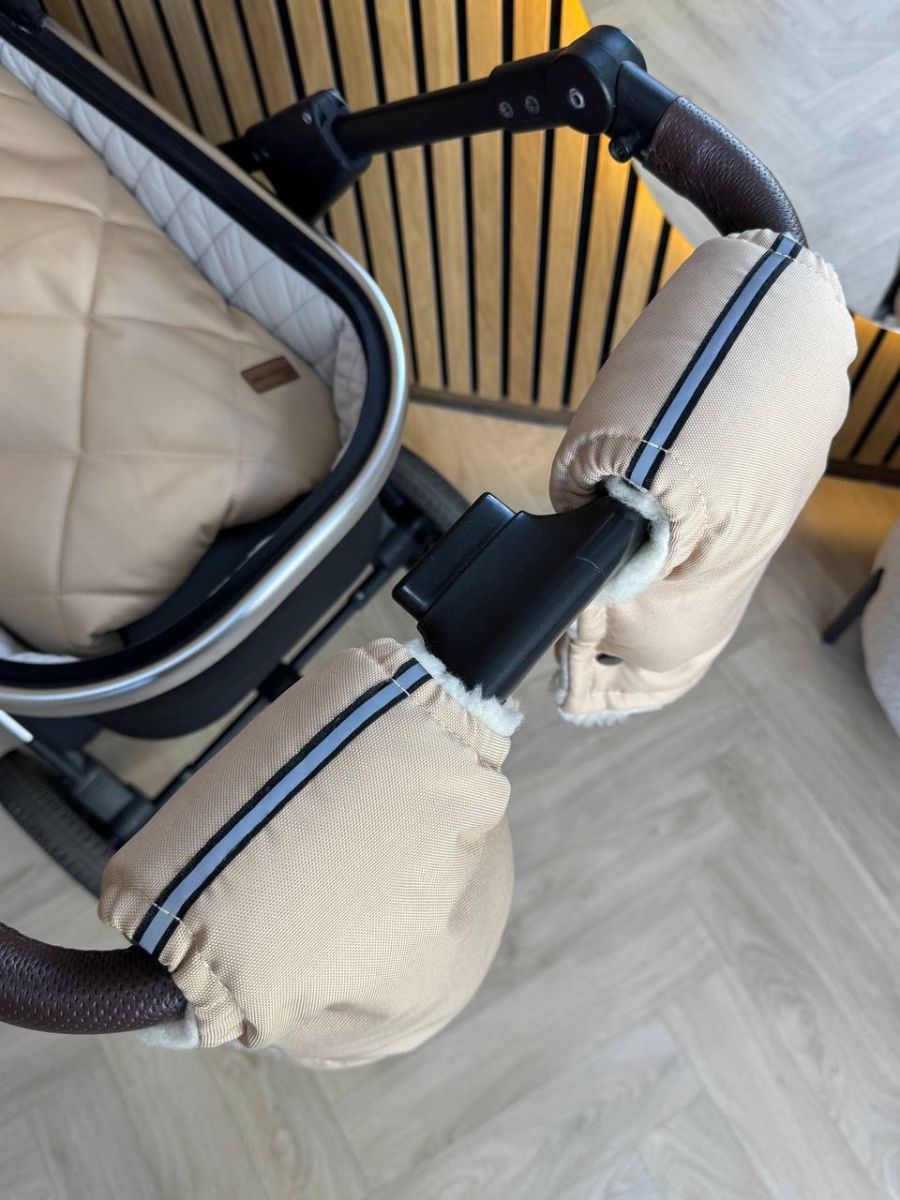 Рукавички з овчини на візочок зі світловідбиваючою стрічкою