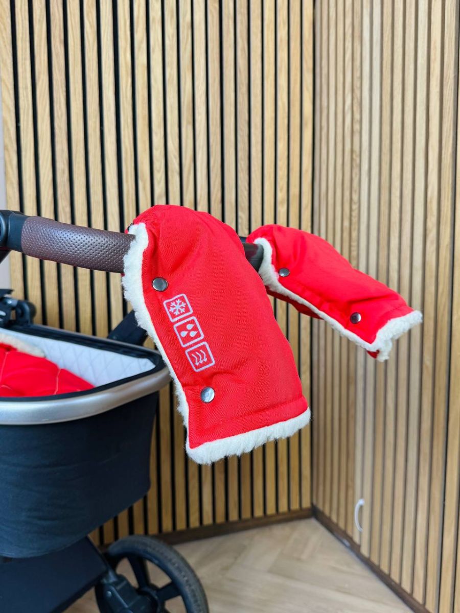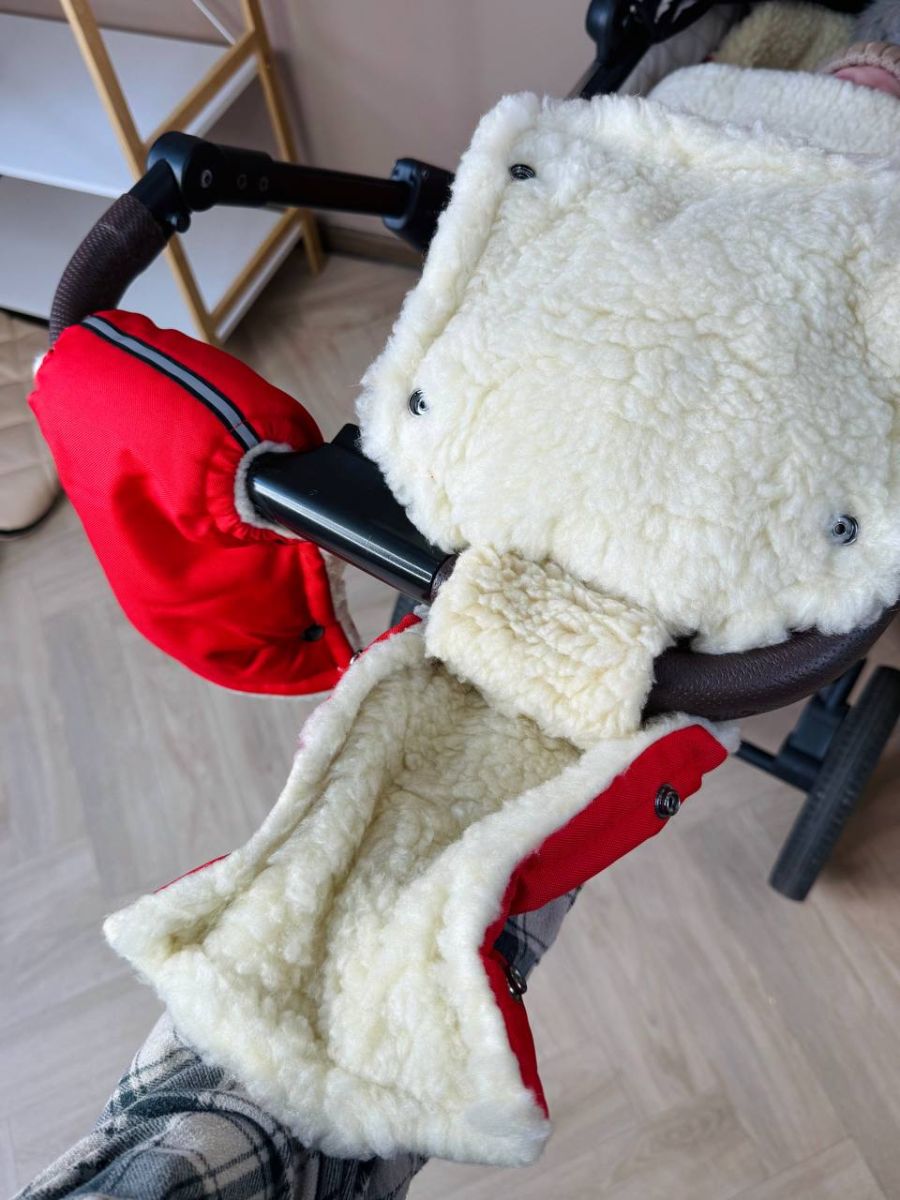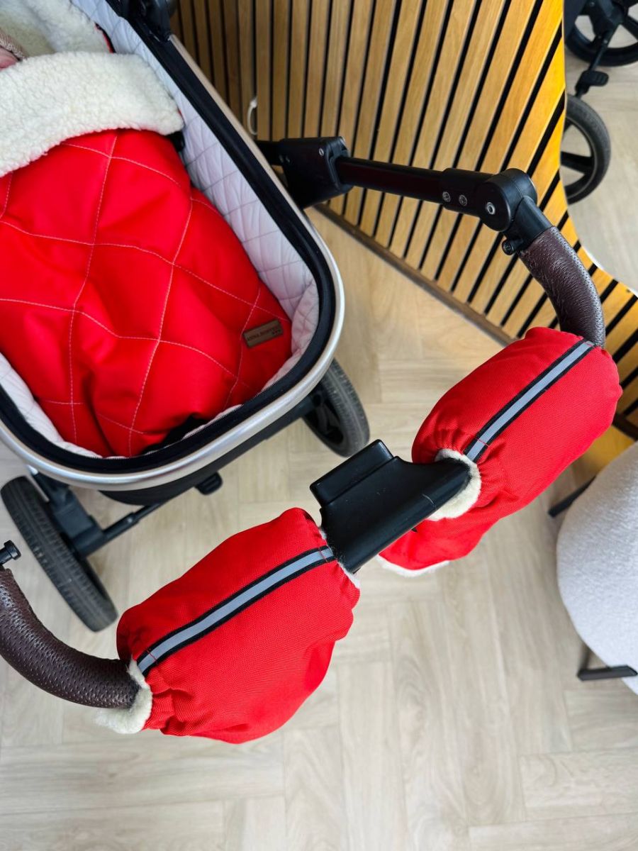 Рукавички з овчини на візочок зі світловідбиваючою стрічкою