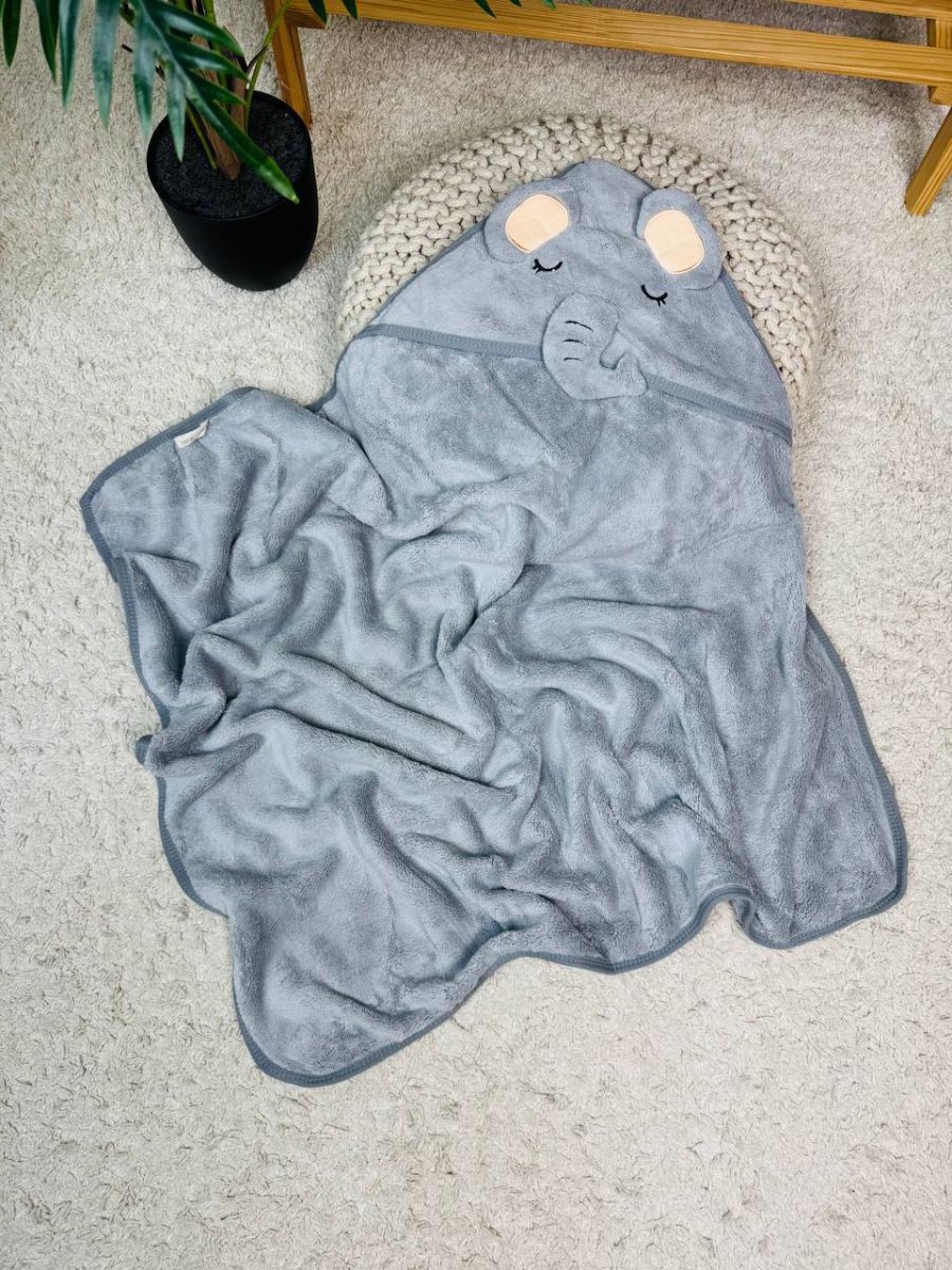 Рушник-кутик дитячий, 80*80 см. Колір - Сірий, слоненя