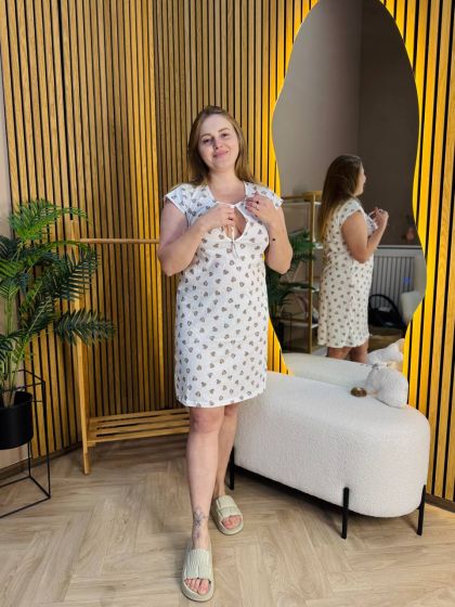 М’яка, дихаюча тканина, вільний крій і практичні зав’язки на грудях забезпечують легкий доступ для годування — ідеальний варіант як для майбутніх мам, так і для тих, хто вже тримає свою крихітку на руках.